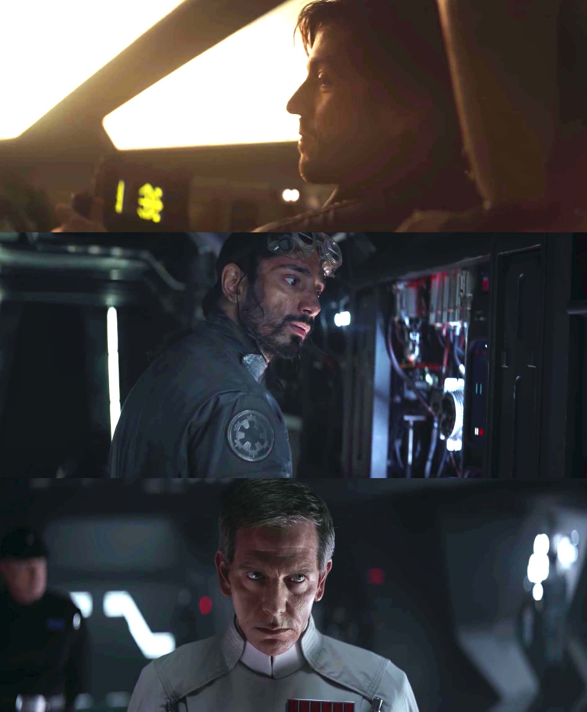 It is already apparent from the trailer that there is something different about the latest Star Wars movie, Rogue One: a Star Wars story. There is something quite serious about it: the Star Destroyer appears more like the original than even the original. The special effects already seem understated, and there is a return to the gritty realism that defined so many of the science fiction films of the 1970s (Alien, Blade Runner, for instance); but this is not a meta-style, the kind of J.J. Abrams wink to the past; rather it somehow, even in the trailer, seems to indicate a fundamental return, a rearticulation of this past aesthetic in the contemporary context. Then there is the acting, already obviously distinctive, not overly exaggerated American in the trailer: rather than a kind of dialogue punctuated by definitive statements (''let's go!”, “we will overcome!”) assembled into an acceleratingly confusing explosion of predictable plot-lines, there is a clear effort in the trailer to give the dialogue space to resonate and then withdraw into the reality of the emotional tenor of the characters and the situation to create space for something unknown, an emotional connection to the unpredictable unfolding of the narrative: the droid says there is a 97.6% chance of failure and rather than leaving the audience with their implied moment to laugh, the trailer cuts to another character's (Riz Ahmed as Bodhi Rook) inscrutable look, creating a dissonance in the comedic moment; or where Diego Luna as Cassian Andor responds to Felcity Jones as Jyn Erso questioning whether he's able to commit or not ('Good?'; 'Good'), and, rather than existing as a statement on its own, the camera remains with him in thoughtful silence, as he turns back to check her reaction; or, finally, where Ben Mendelsohn's Director Orson Krennic stares ominously for longer than is necessary to convey an appearance of an emotion of anger to cut through to real rage.
