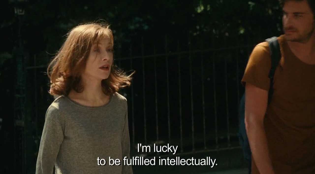 There is certainly something appealing to the idea of human life as fully intentioned at every moment, of the possibility that one can shape life according to their thoughts, and a form of quiet deliberateness found amidst the flux of life. This is the feeling one might have after watching Things To Come, a 2016 French film starring Isabelle Huppert, as the private sounds of life—the footsteps on the street, the sound of the keys in the door—are isolated and heightened to the senses through the attention and selective focus that are natural to cinema. One might feel themselves and the bottomless solitude of human existence reflected in the cinematic such that one feels oneself participating in the vast expanse of silent, deliberate human activity at that center of the cosmos. And one might say that this indeed expresses the truth of human life, that one is all alone in it after all. On the other hand, as the experience of the film begins to recede a missing dimension of humanity sows a dissonant chord in the perfection of this idea. The deliberateness of a walk across the yard contrasts with an emotional vacuity in a moment in which one is told that their husband of 25-years is leaving them for a younger woman; or the casual dismissal when a publishing agent informs that one's work is no longer contemporary, saleable, and that their book contract will not be renewed. These moments seem to say that one must accept with flippant resignation the truth that others' actions are never bound to them and that they can never really expect anything from anyone and to do so is only a temporary, self-indulgent fantasy. In this way, the philosophy that the film expresses is at one and the same time comforting truth and over-extended presumption: one feels the solitary truth of life elevated to cinematic significance at the same time notions of morality and confidence in others are subtly undermined by a seemingly inappropriate level of individualism.