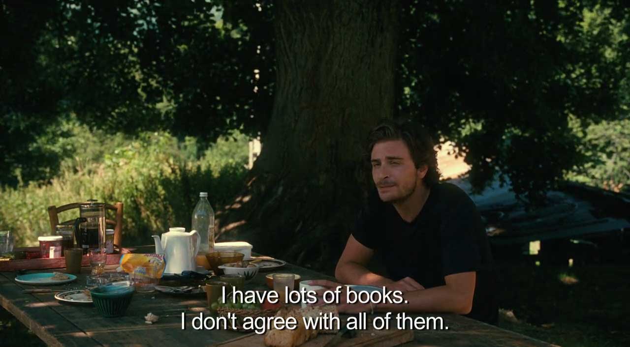 Furthermore, what masquerades as an enlightened selflessness concerned with 'the social' and society becomes, in this further withdrawal inward and away from the world, clinically selfish through the way in which a disavowal of belief in other human beings becomes an empty form of instrumentality that reinserts one into these human relationships in a purely provisional, detached manner. As one justifies their withdrawal from the conflicts of life in the self-assurance that their powerlessness has only to do with a more basic structure of life and biological-intellectual evolution, what appears to one as radical realism in the face of the bottomless contingency of life is exposed as disgustingly inhuman3. Rather than a belief in others and the family that comes from a reckoning with the fundamentally flawed individualism of liberal philosophy that one must confront as the ever-decreasing sphere of influence one has over their life and surroundings in the world occurs in old age, what this film prescribes is the complete dissociation of one from life according to a new, self-produced rationalization in order to bring thought back into conformity with a life that fundamentally (and self-avowedly) rejects it. In this way, rather than ever being subject to a breakdown in one's thought that would force a confrontation with others through which a new form of living-together and the production of a new, shared rationality could arise, this film reveals the way in which one is able to reconstitute an individualized, privatized philosophy of life based on a deeper concept of the atomized structure of life that sees the only goal as reproducing independent, individualized life ('I thought I taught you at least how to think critically and independently', she says to her student). This is the generational churn of individualized dissociated schizo's that prescribes an endless internalization of external difference and conflict: it is the universe reflected in one's own private thought, trapped in a selfish, self-satisfied bubble that engages with people only according to their own thought in the manner of an empty instrumentality that masquerades as selflessness (e.g., while 'I would prefer you eat it hot' may seem like a genuine grandmotherly thing to do, it betrays a total vacuity amongst those at the table who are every moment avoiding conflict, withdrawing into themselves and reforming their own independent thought through which the only social life that remains is superficial chit-chat based in economic affluence).